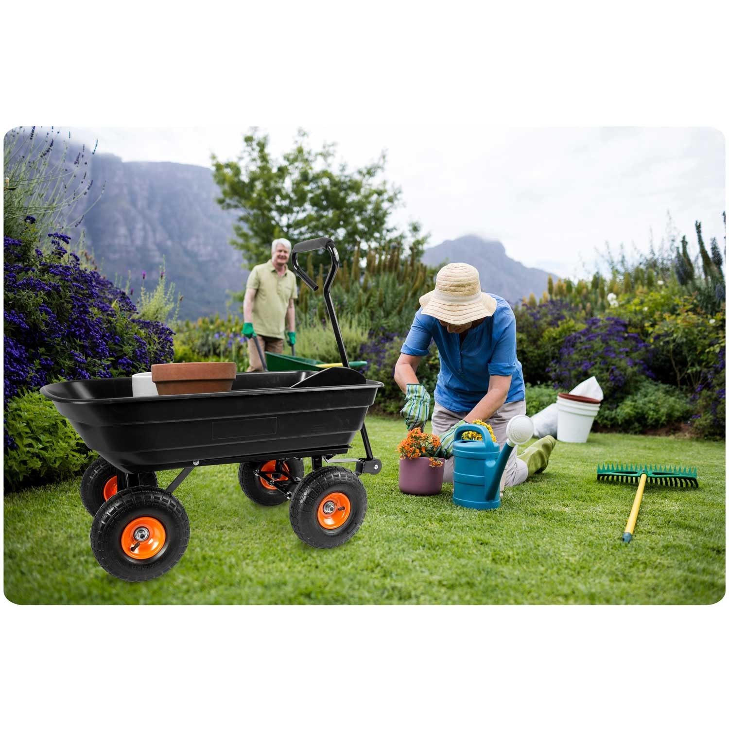Skrętna oś zastosowana w wózku sprawia, że manewrowanie nim nawet z dużym obciążeniem, nie sprawi najmniejszego kłopotu.